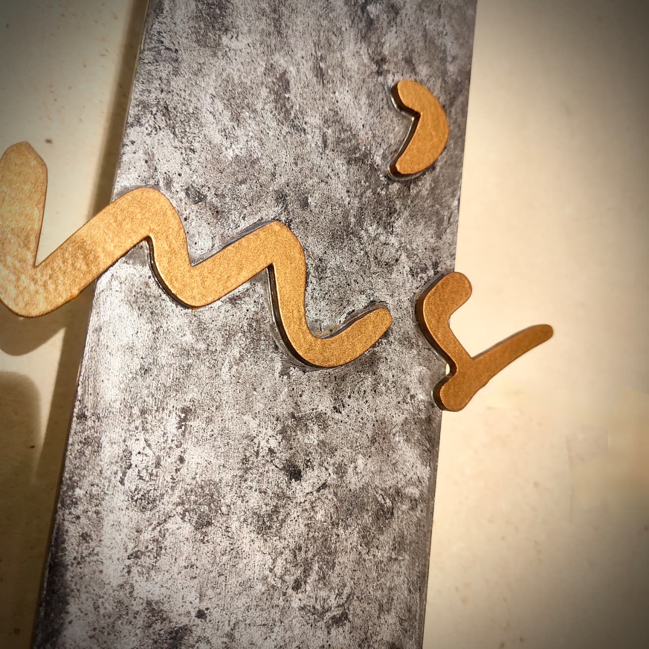 The name is hand-finished in an elegant matte gold, complementing the rustic base with a luxurious contrast. Carefully crafted as a single-piece structure, the plate comes with welded mounting pins at the back for seamless installation.