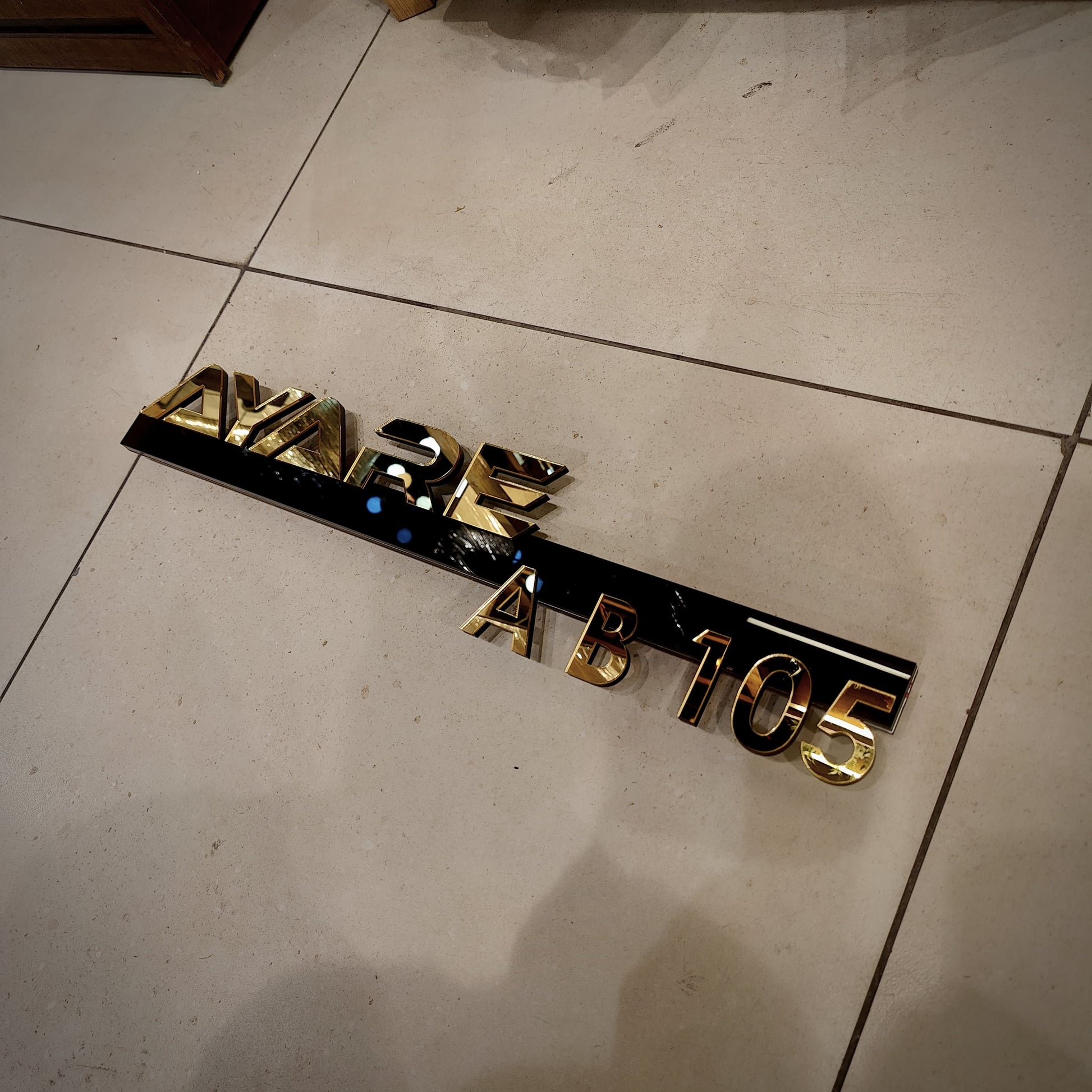 Precision-cut acrylic or metal fonts in matte, gloss, or mirror finishes.
