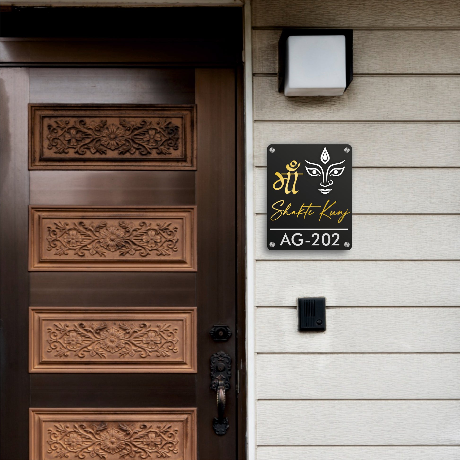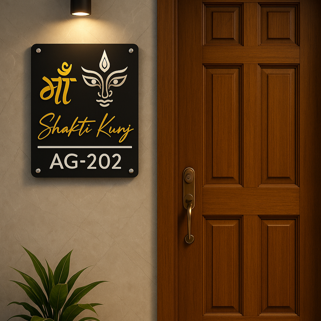 Place this sacred nameplate at your entrance to invite the divine blessings of Maa Durga, bringing strength, positivity, and protection into your home.