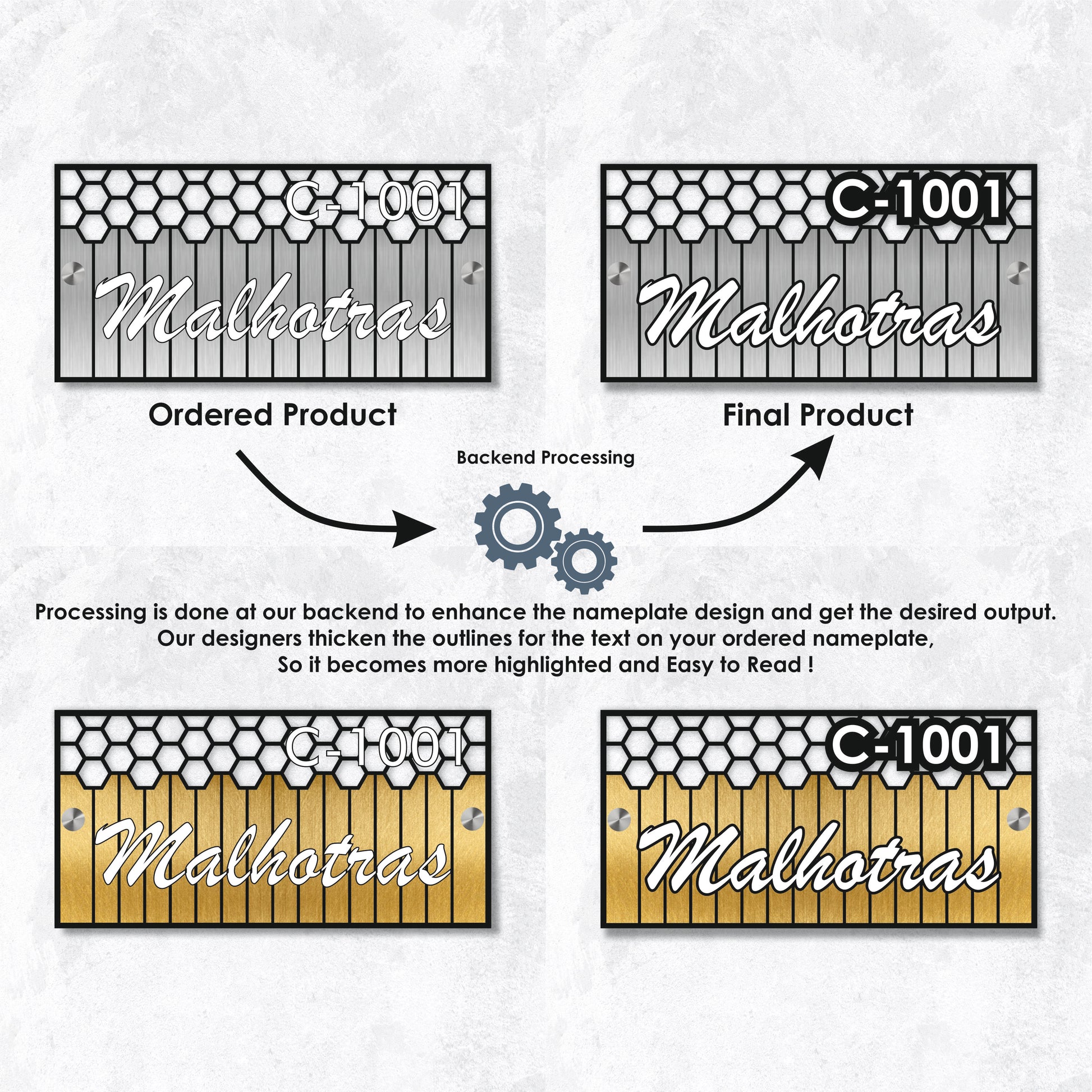 The Honey Comb Nameplate — where form meets function in the most stylish way.